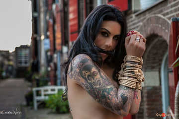 We have another, very authentic Amsterdam place in mind - we throw everything, including our Spanish beauty in the car and drive to Prinseneiland. Being a quit little island where nobody is awake yet we position Nereida, naked, in front of a beautiful authentic warehouse - then tie and gag her. She's taking it a like a trooper.