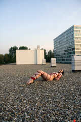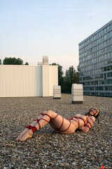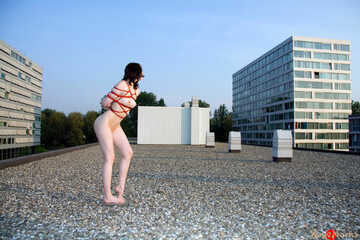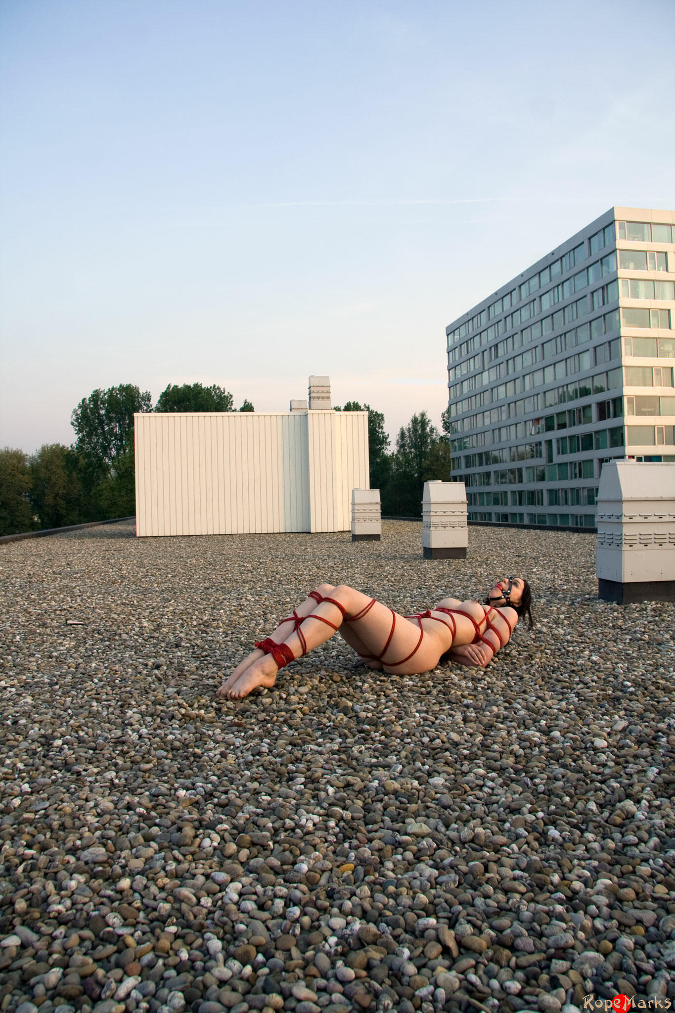 The beautiful Dutch Dame tightly bound on the rooftop of our place. In full view of the neighbors to see... and they saw! :-)